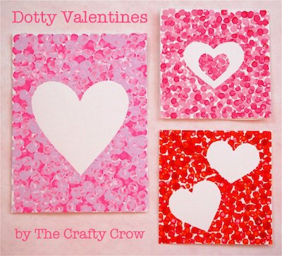 I found this fun dotty heart Valentines Day Card Craft over on The Crafty Crow Blog. It is another really simple craft yet produces a beautiful card at the end. Plus this is one the kids would really enjoy making to. Let the children make the paint dots on the paper and help you turn it into a card. Very pretty and girly. This technique could be used to do lots of other shapes too, in any colour, for any occasion.