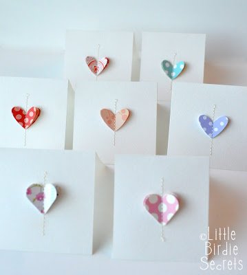 You don’t have to be great with a sewing machine to make these stitched heart cards I found on Little Birdie Secrets. This little DIY is so simple yet the cards are very eyecatching and pretty. You can use any scraps of paper or fabric, so it is great for using up the little scrappy bits left over from other projects. Although they are meant as Valentines Day cards they could be used any time of year.
