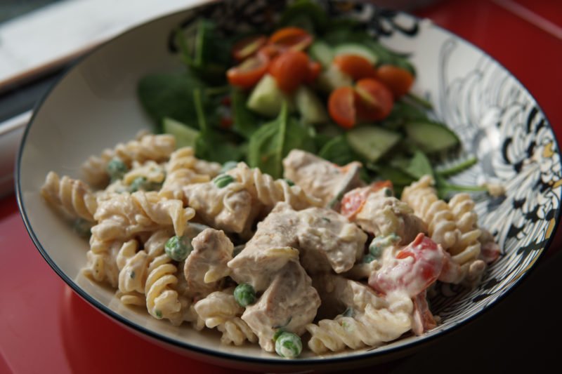 - Add your pasta to your creamy chicken mix, pile on a speedy side salad and enjoy